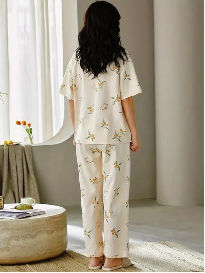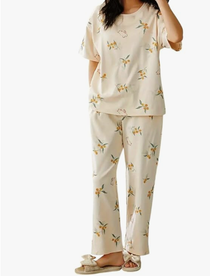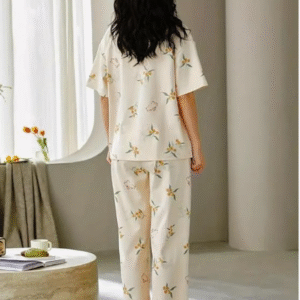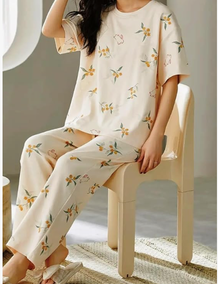 Korean-Style Printed Design: Trendy and cute printed night suit inspired by Korean sleepwear fashion.
